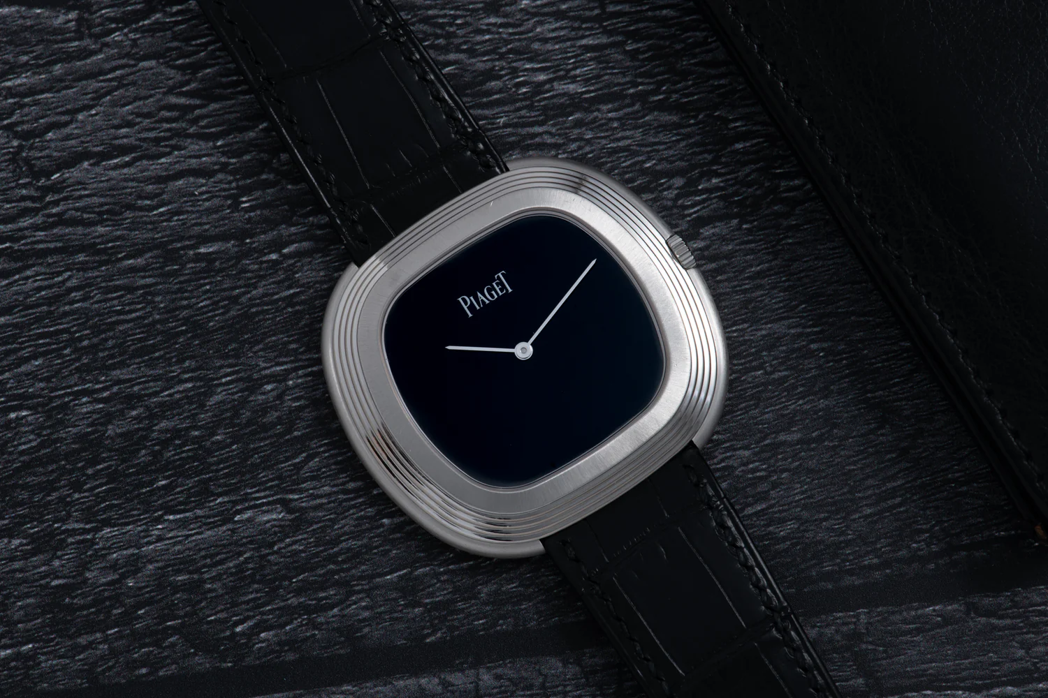 A Design That Stands the Test of Time Originally introduced in 1972, the Piaget Black Tie quickly became a defining dress watch of its era. Its 45mm cushion-shaped case with gadroon detailing remains one of Piaget’s most coveted designs, admired by collectors and enthusiasts alike.