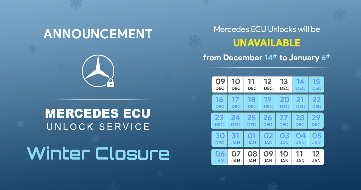 Our ECU Unlock Service will be temporarily unavailable for purchase from Saturday, December 14th, until Monday, January 6th. Please keep this in mind when scheduling appointments for your customers.