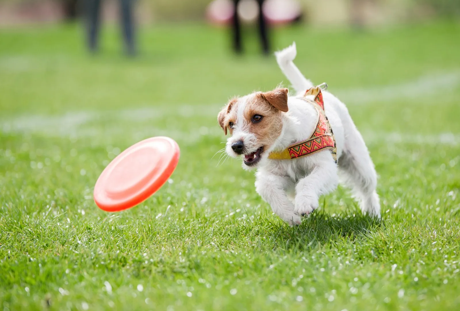 5 Key Tips for High-Energy Dogs Swap traditional food bowls for treat puzzles to stimulate your dogâs mind. Use a flirt pole to engage in vigorous chase games. Introduce Frisbee as a fun way to get your dog moving. Schedule playdates with other dogs for social and physical exercise. Hiking with a dog friend offers the highest quality exercise for a dog.