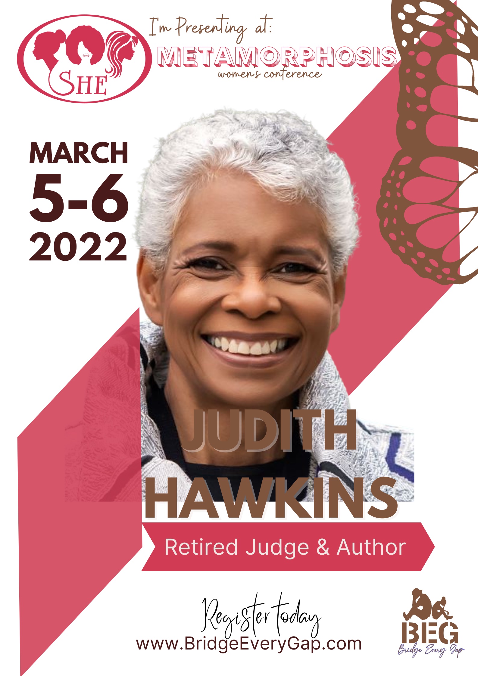 Judith Hawkins will be presenting at the SHE Empowerment Conference in Pigeon Forge, Tenn. Attend in person or virtually for this weekend of relaxation, soul searching and fun. Other speakers include relationship coach and therapist Audrey Morrison, transformational mindset coach Joy White, chiropractor and health coach Dr. Leona Allen, and brilliant life strategist Dr. Vernita Glenn-White.