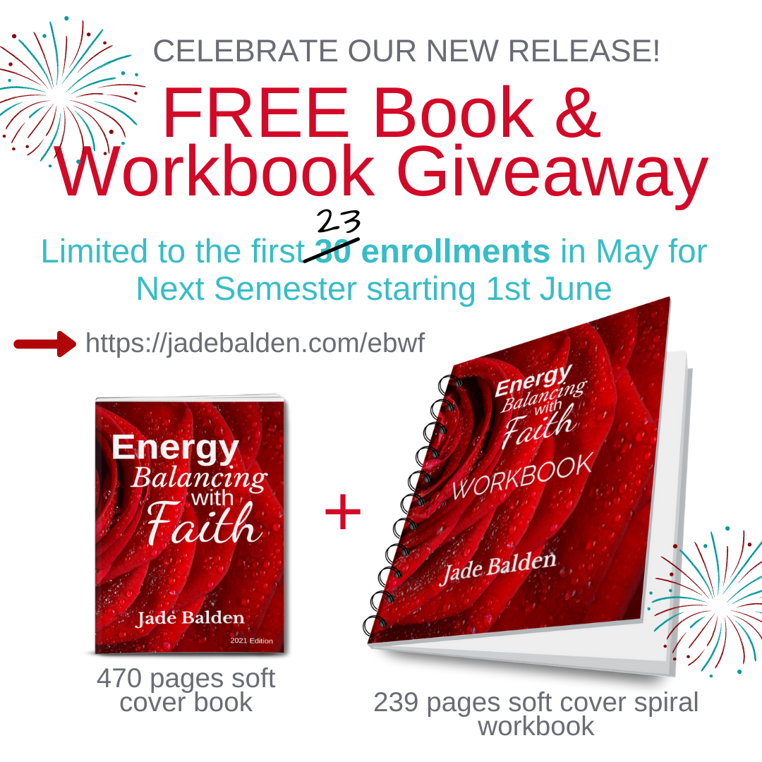 To celebrate, I am giving away 30 Energy Balancing with Faith book and workbook to the first 30 enrollments. Actually we only have 23 left now because as soon as some people heard, they took advantage of it before I had time to even post this.
