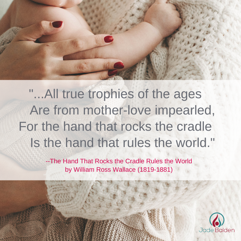 "...All true trophies of the ages Are from mother-love impearled, For the hand that rocks the cradle Is the hand that rules the world."