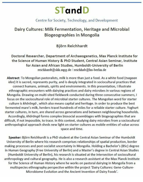 | March 19, 2021 12:30 PM - 2:30 PM PDT Dairy Cultures: Milk Fermentation, Heritage and Microbial Biogeographies in Mongolia