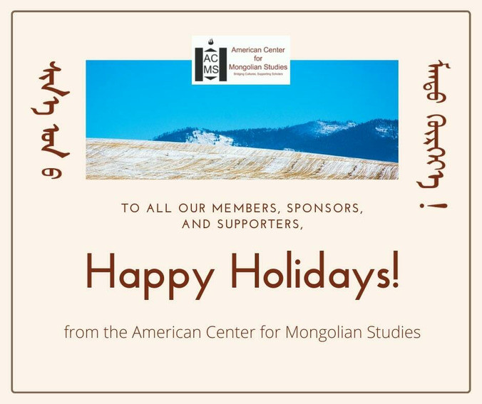 This Month in Mongolian Studies is a monthly listing of selected academic activities, resources and other material related to Mongolia. This list is based on information the ACMS has received and is presented as a service to its members. If you would like to submit information to be included in next month's issue please contact the ACMS at info@mongoliacenter.org This publication is supported in part by memberships. Please consider becoming a member of the ACMS, or renewing your membership by visiting our website at mongoliacenter.org/join.