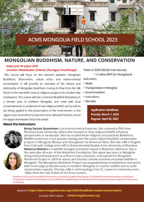 | | MONGOLIA FIELD SCHOOL 2023 Applications are now OPEN