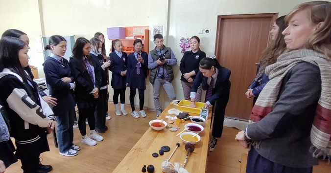 | | Choibalsan workshop: high school students learn about textile conservation. |