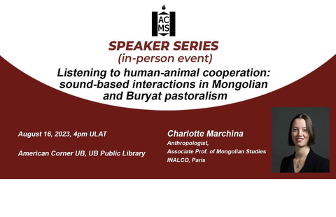 On August 16, ACMS held in-person Speaker Series event. Our guest speaker was Charlotte Marchina, an anthropologist from INALCO, Paris. Her topic was Listening to human-animal cooperation: sound-based interactions in Mongolian and Buryat pastoralism.
