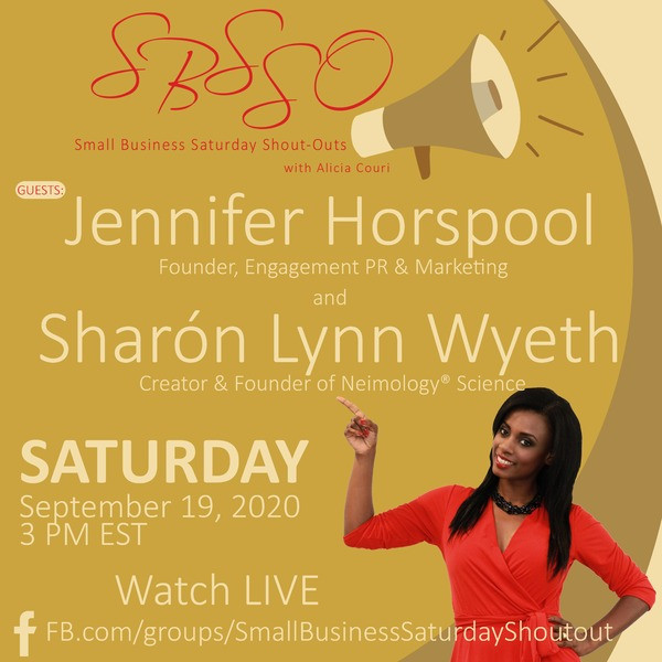 Then on the second half of the show, I get the wonderful honor of interviewing Sharón Wyeth. I first met Sharón a year ago in New York City, we were both attending the same event and I found her skill set incredibly unique and fascinating. Sharón created Neimology® Science, the study of the placement of the letters in a name, and assists HR business departments to narrow down candidates to be interviewed. She's worked with lawyers in how to present cases to judges and helps couples and families to communicate better. Sharón also creates names for new business, new products. She has created an entire methodology for reading people like nothing else you have ever seen. Within your name are all the clues needed for her to know exactly who you are. You have to see this in action this Saturday at 3:30 est on the SBSSO.
