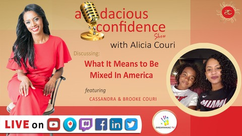 On the next Audacious Confidence Show host Alicia Couri speaks to 2 of the most important people in her life, Cassandra & Brooke Couri to understand their thoughts and perspective on being mixed in America. Join us Tuesday at 7:00 pm EST on Dreamaniac TV