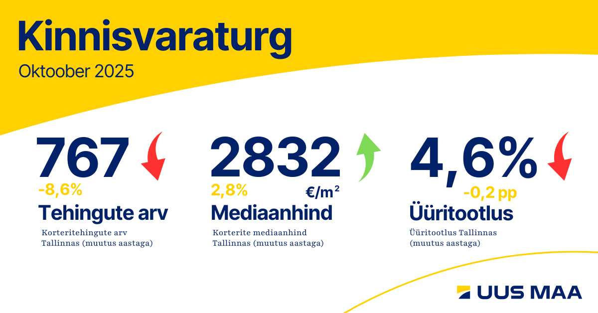 Oktoobrikuu turuülevaade: Tallinna korteriturg on tehingute arvult aktiivne, kuid mediaanhinda iseloomustab stagnatsioon