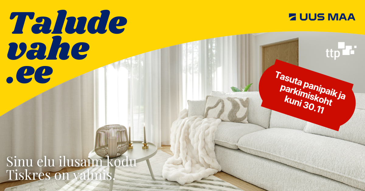 Sinu uus kodu mereäärses Tiskres! Tasuta panipaik ja parkimiskoht kuni 30.11!