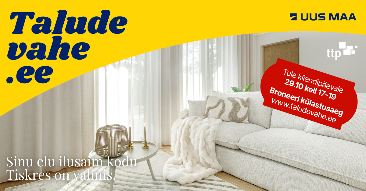 Oled oodatud Taludevahe kliendipäevale 29. oktoobril kell 17-19. Kliendipäeval korteri broneerijale tasuta panipaik ja parkimiskoht🔥