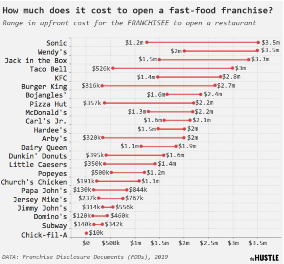 At the high end, we have Sonic and Wendy’s (millions in franchise fees)… and at the bottom end we have Chick-Fil-A and Subway.