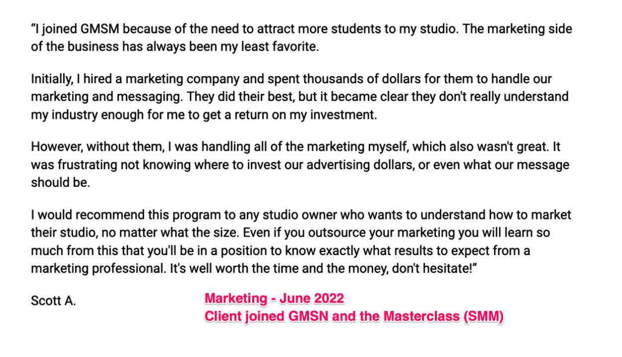 If you’ve ever watched our case study videos and wondered if it sounded too good to be true… this is why studios get the kinds of results that you see in our case studies.