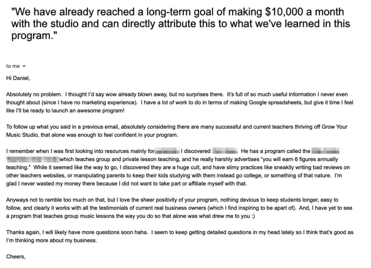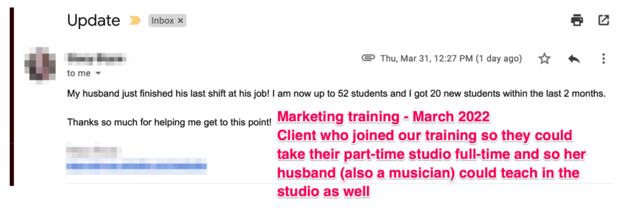 This is just a handful of scores and scores of emails that I’ve received from the owners of small studios up to the owners of mid-size music schools.