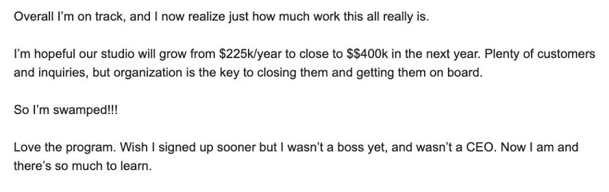 I’ve been talking about the Masterclass this week. I’ve been talking about marketing. I’ve told you my story. But, I haven’t really told you what others are saying. You will need images turned on to read this email. Wanted to share what others are saying: |