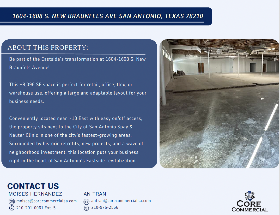 Versatile ±8,096 SF retail/warehouse flex in fast-growing Southeast San Antonio