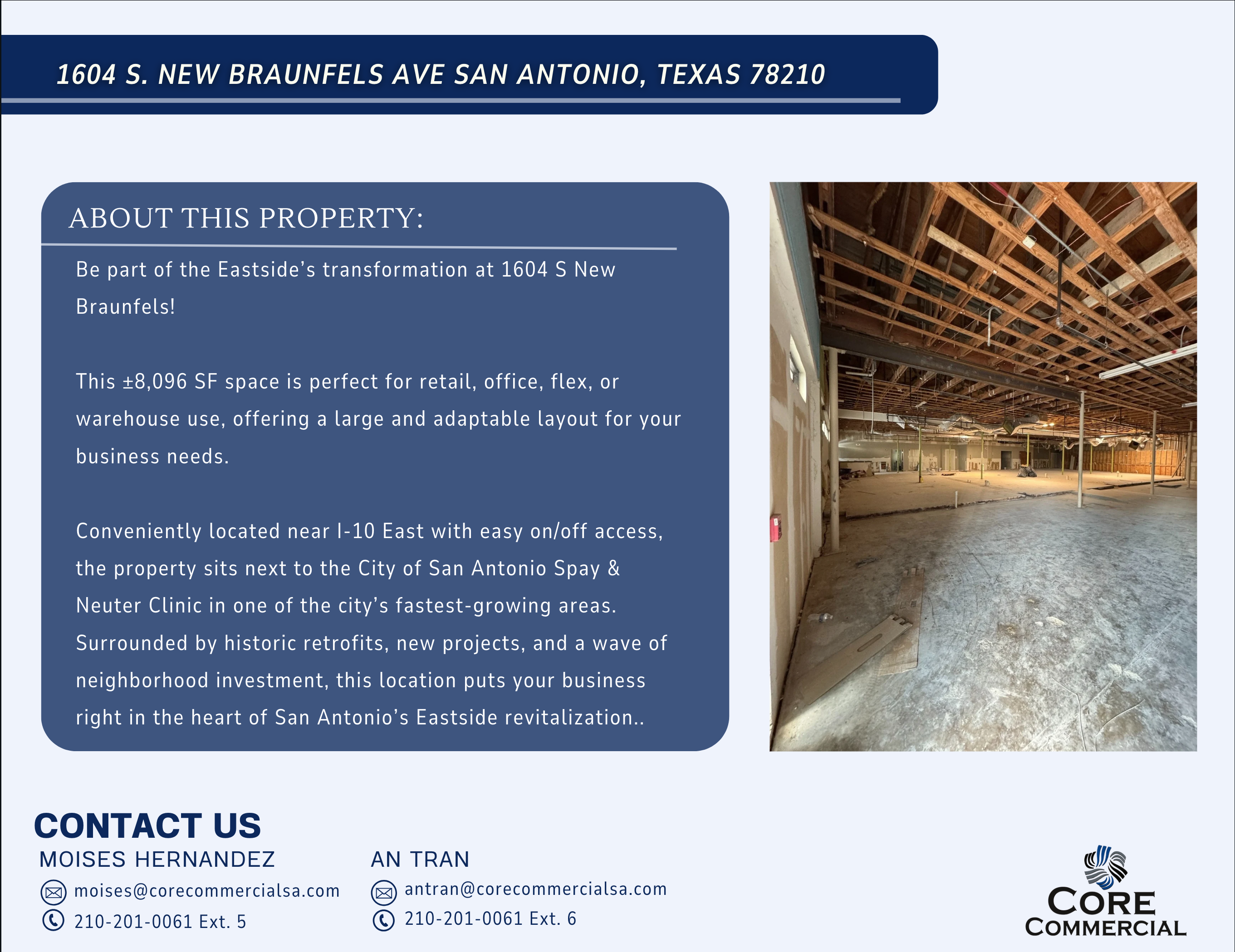 Subject: ±8,096 SF Flex Space off I-10E | High-Visibility | 1604 S New Braunfels
