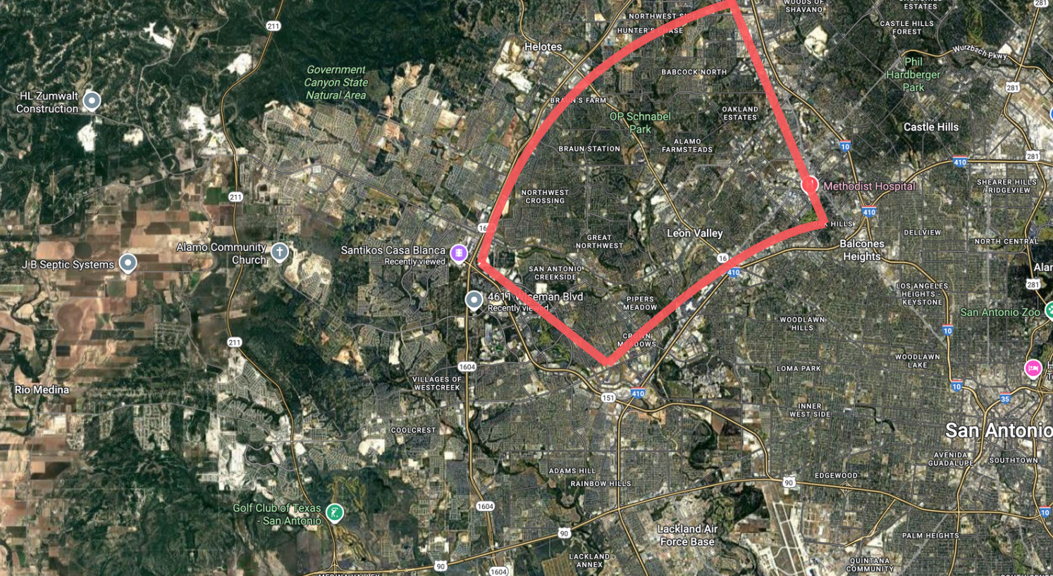 San Antonio MSA: West of I-10, Outside 410, North of 151