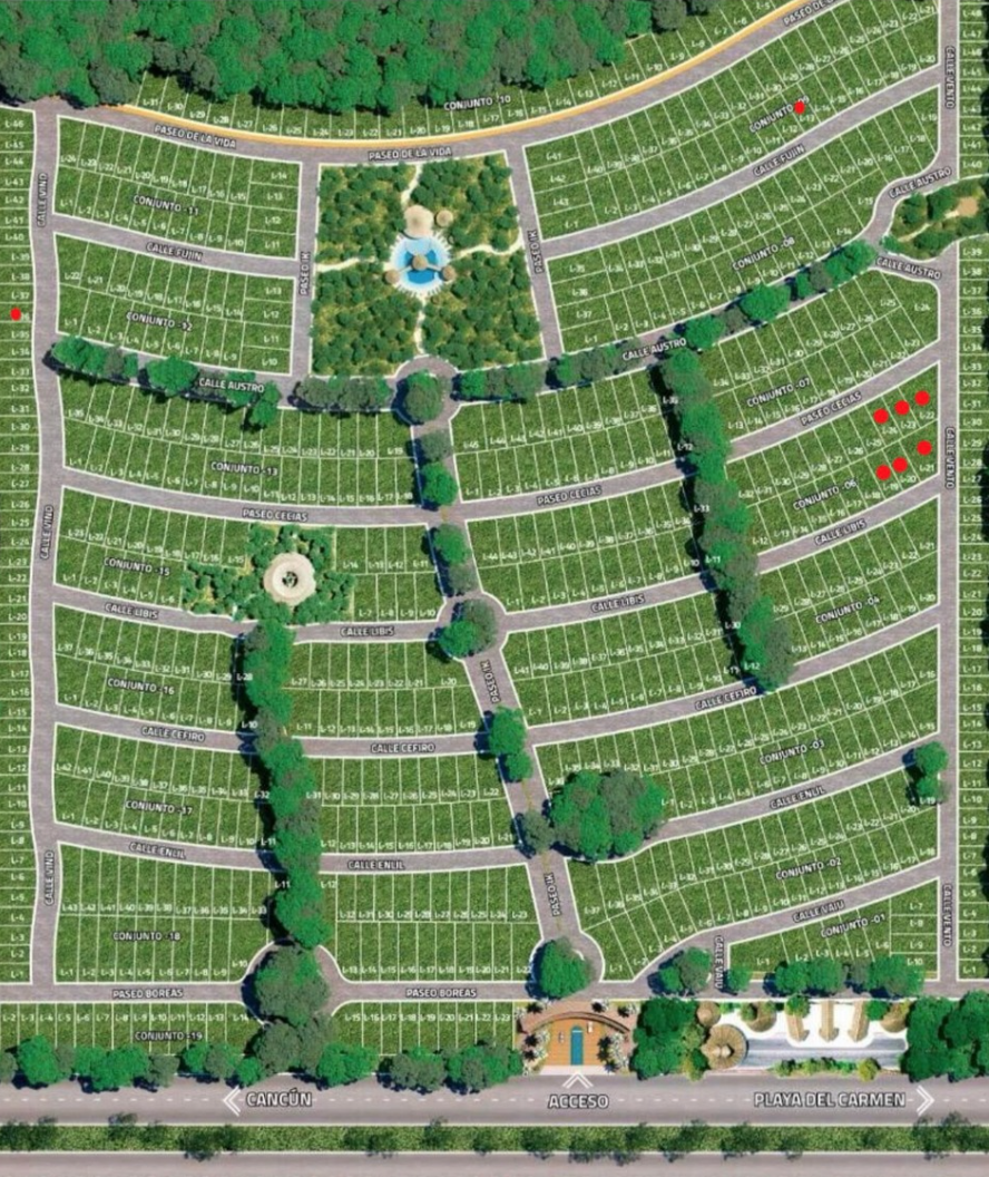 Fourteen well-positioned, luxury lots available in the highly desirable and relaxed community of Puerto Morelos. The location offers convenient access to both Cancún and Tulum, and is situated within a secure, resort-style neighborhood featuring amenities such as a pool, gym, walking trail, dog park, and additional community benefits.