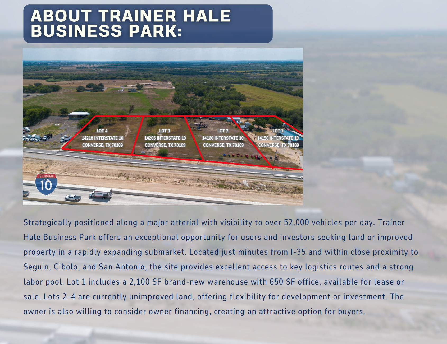 Located along I-10, ≈ 52,000 vehicles per day
