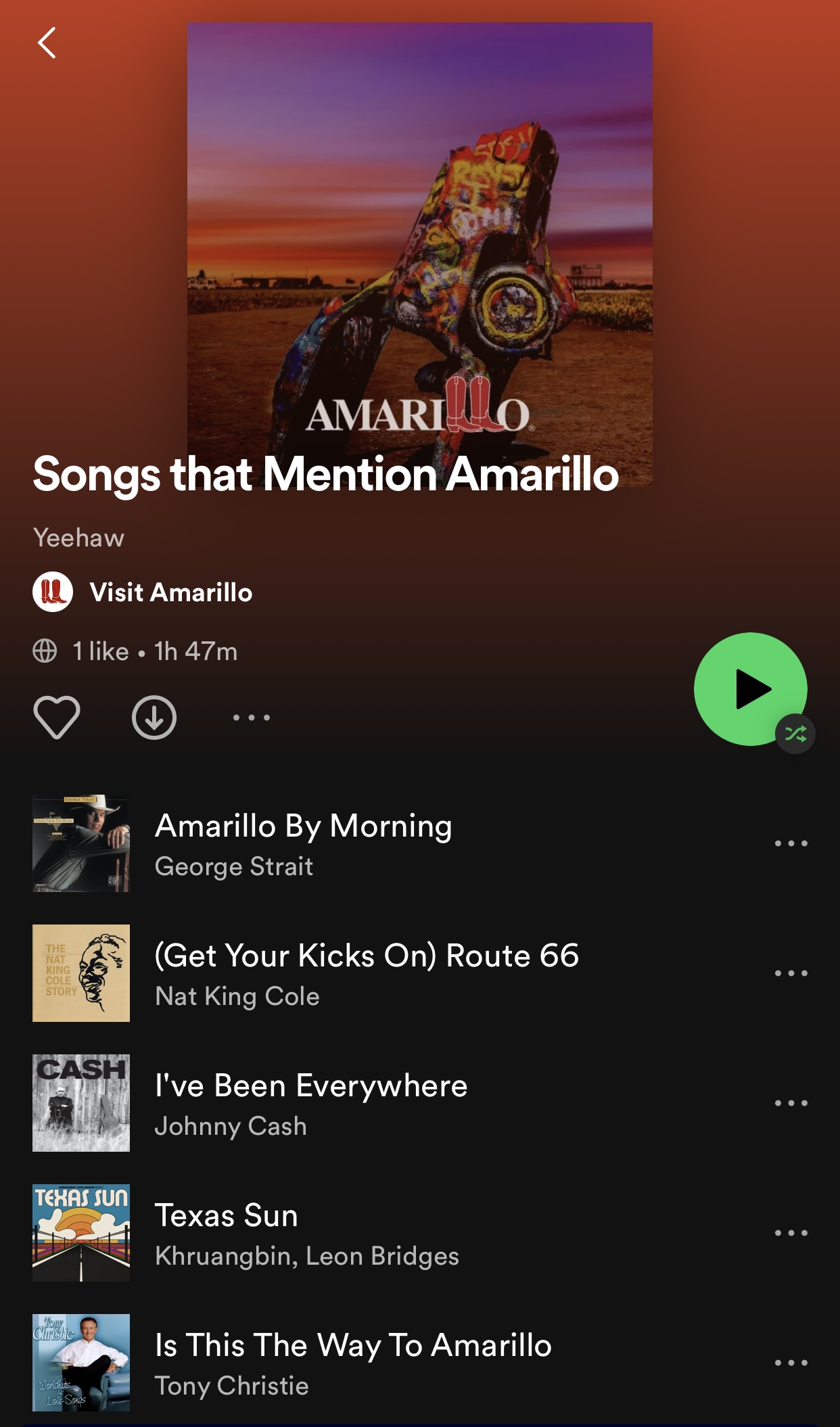 Amarillo has been celebrated by a number of popular songs over the years. We've gathered them all into a playlist on Spotify. Listen now!
