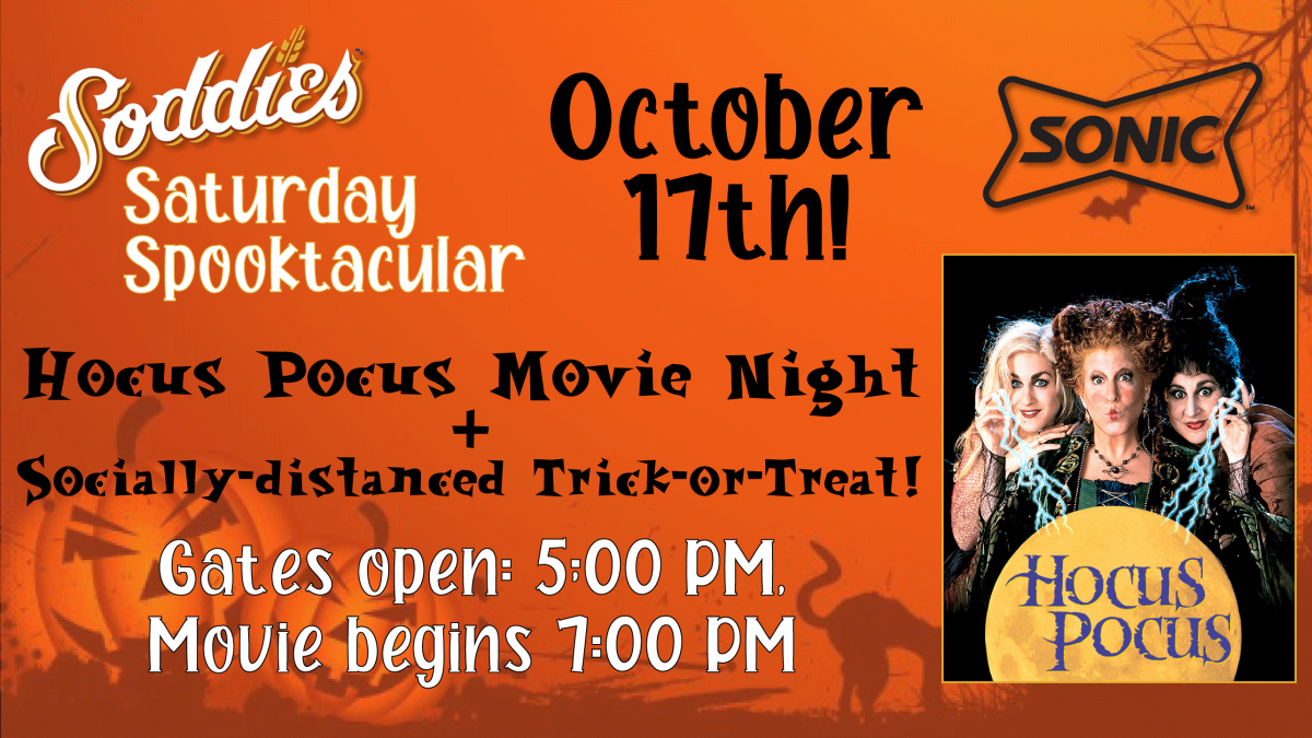 Soddies’ “Saturday Spooktacular” outdoor family movie night presented by Sonic is scheduled for Saturday, October 17 starting at 5 PM at HODGETOWN and is set to bring a socially-distanced and safe Halloween to downtown Amarillo. The event will feature the showing of Disney’s “Hocus Pocus” along with pre-movie, socially-distanced trick-or-treating around the concourse, adult, child, and family costume contests, and more.