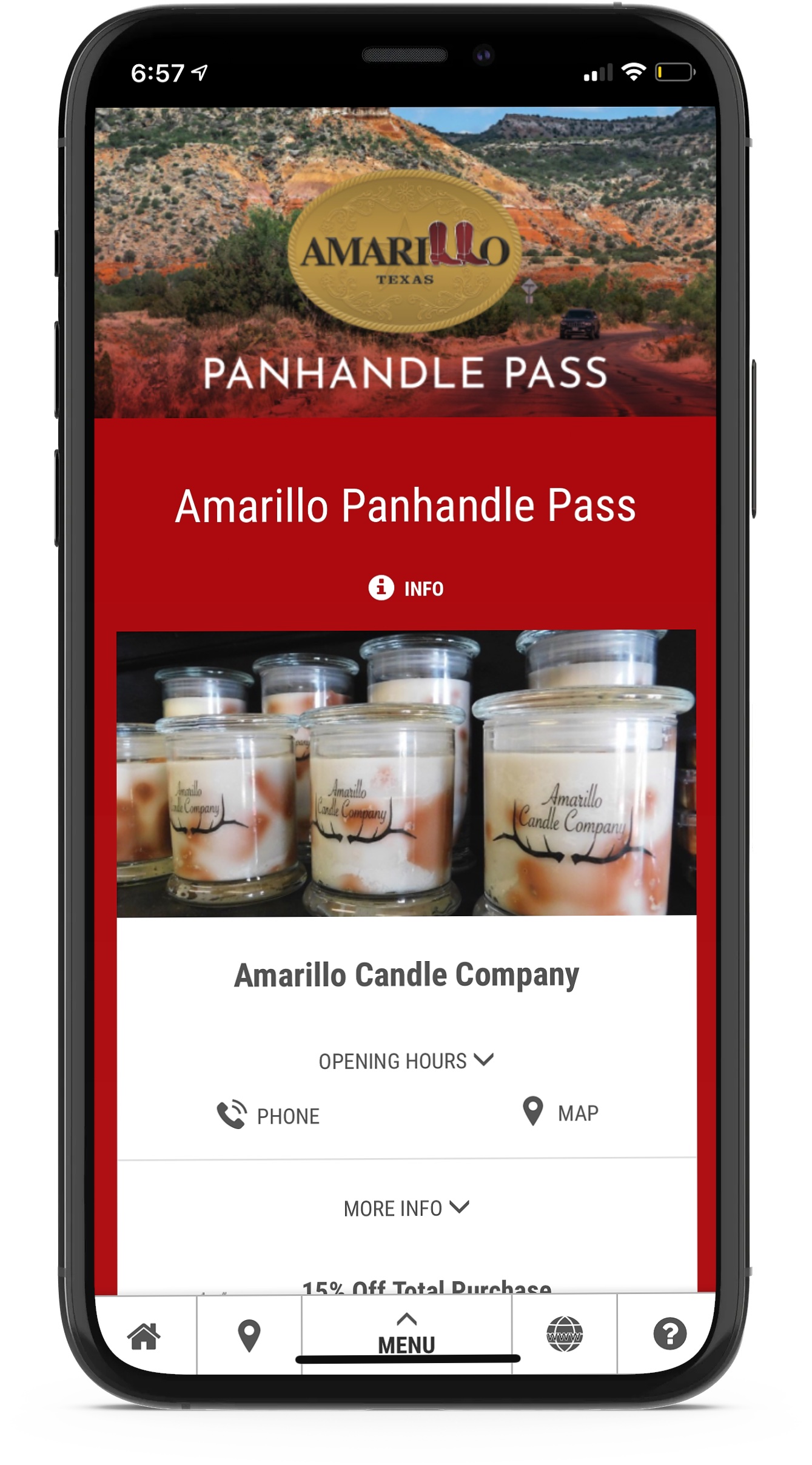 Once redeemed, you can easily access your pass via text, email, or "app." The pass will guide you through the Panhandle based on your location, so you never have to worry about your next stop or wasting time. |