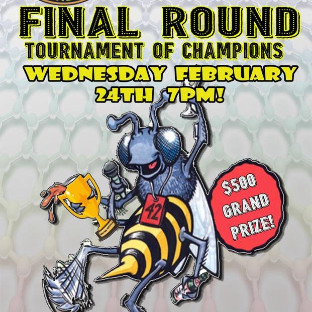 The tournament will be held on February 24th from 6 to 9 PM at Lit Arcade Bar. Watch the winners of the last 5 Slurring Bees battle it out one word and one drink at a time@