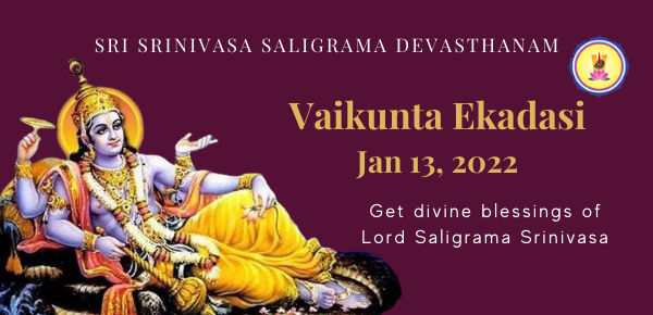 This significant day considered as the once-in-a-year powertime of Lord Vishnu will be observed at AMMA’s Srinivasa Saligrama temple, near Bangalore. Participate in the temple's Vaikunta Ekadasi enhanced Vedic ceremonies and connect with Lord Vishnu to invoke His blessings for wealth, material abundance and spiritual awakening. Take advantage of this time when the Gates of Heaven open inviting bliss, wealth blessings and spiritual awakening. |