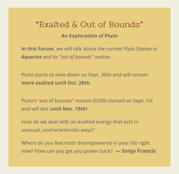 | | | | | | | | Join me for our FORECASTING FORUM, live on Saturday, Oct. 11th at 9:30am PDT/12:30pm EDT/5:30pm BST (London-time)/ Oct. 12th at 2:30am Sydney Time (90+ minute webinar)