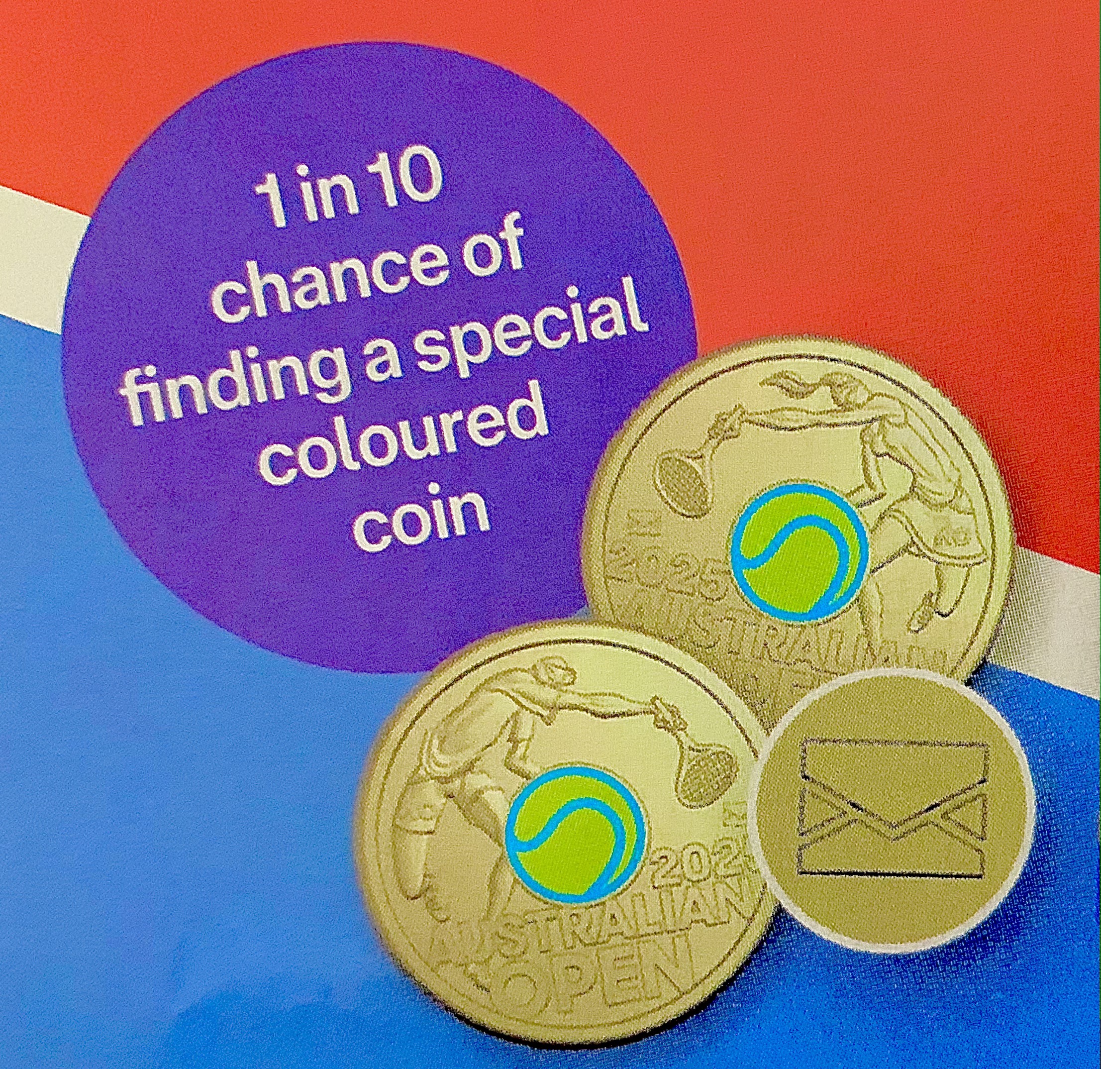 (so they're slightly different to the coins that you will receive in your change). - One-in-every-ten folders have a special coin with a 'green' tennis ball.