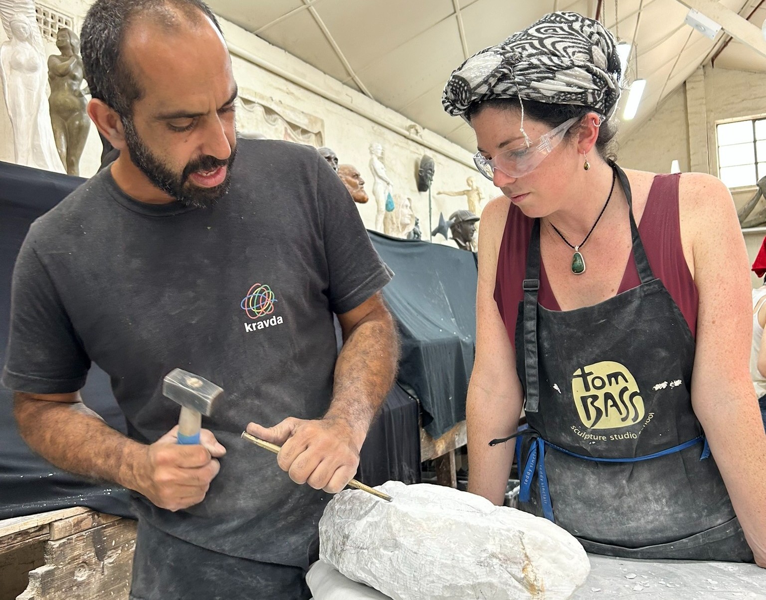 I have a passion for expressive works and seek inspiration from sculptors that embrace and showcase texture in their works. When sculpting I often find myself in a zone where I am totally immersed in the process. Working in clay is also something I find very special, as it can be manipulated to almost limitless potential and present immediate results. This piece was sculpted in clay and moulded and cast in plaster, it took a while to complete and would not have been possible without the tuition from both Monika and Karen who helped me turn the vision into the sculpture.