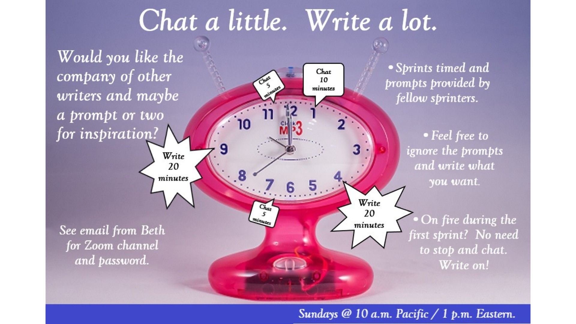 The writing sprints are one of our offerings. Here is your Sunday sprint reminder The sprints currently happen weekly**: **Subject to change.