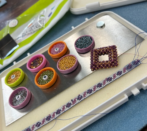 I have discovered that the most effective approach is to introduce the basics in small, manageable steps. By breaking down the techniques into bite-sized pieces, with practice in between, students can better assimilate and integrate the techniques into their minds. As the learner grasps each fundamental aspect, we move forward, building upon these skills. This incremental learning process allows students to gain a deeper understanding of the philosophy behind beading, which essentially involves sewing beads together to achieve a desired result. As their proficiency improves, they begin to see the