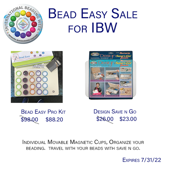 For all of our lovely beading friends. Bead Easy was invented by me, a beader for beaders. Work patterns, keep beads sorted, travel with everything in place and no bead soup! Patent Pending. On Sale the Bead Easy Pro- 8x10 Board and 20 cups plus shovel, magnet, letters, spoon, carry bag. Other options are travel size, economy, and starter sets. Design n Go Junior turns the 8x10 board into a travel kit. |