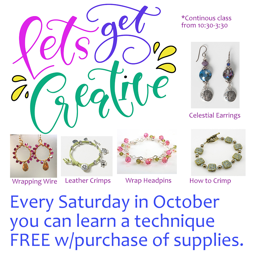 Hello Happy Beaders! We are happy to be introducing classes here at the Bead Institute. We are starting with Free technique classes every Saturday during October. For the class you can watch the demo, and then if you'd like to practice or make something you are welcome to purchase some supplies and make a personalized piece.. We are still practicing Covid "space" so sign up on the web site...or call. We want to keep attendance limited, but will be holding demo's thru out the day. While we are excited to have more free time to create and design, we miss our customers! Stop by and visit us..... Make it a great week! Glenda |