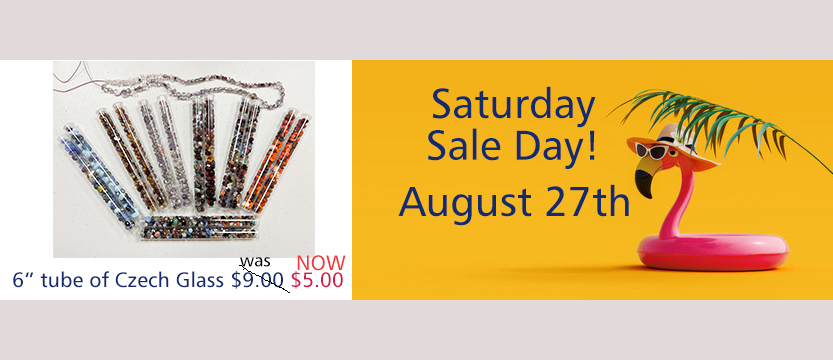 Hello Beaders! I mentioned a few weeks ago that we finally were able to clear out our storage locker. Now we have the privilege of sorting and going thru Oh let's see.... 30 some buckets of beads. Our hard work will be your opportunity for some excellent bargains and interesting new inventory. Every Saturday... we will be having a Saturday Sale Day... with one - three or so items for sale. If you are in town please stop in... out of town feel free to call. We can text photos.. Let the fun begin starting this Saturday August 27th! Glenda |