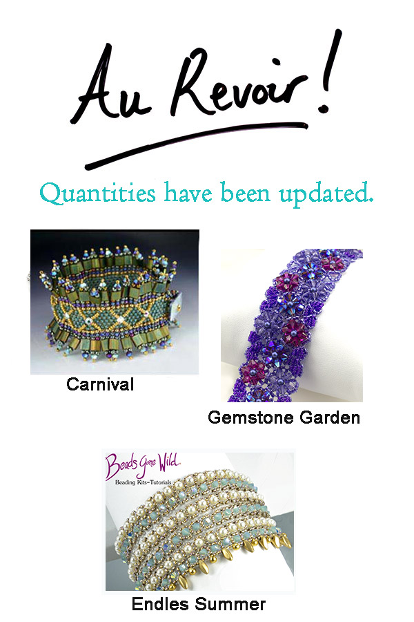 Hello my beading friends! I hope you are managing thru the new challenges that hit us daily. Remember to take some time to breath and have fun. As many of you know, Swarovski is moving out of the DIY market. Meaning we will no longer be able to get Swarovski parts for the store or our kits. I originally started using Swarovski because of the range of colors, quality and standardization. For the last several years I have been focusing on kits with techniques and a little less crystal anyways. Now, however, we will get to try out some new materials. It is exciting in a way. So we have been going thru our inventory of kits made with Swarovski, counting the current stock and updating the quantities on the web site. It is unlikely that we will be able to make more after the current stock runs out. We may in the future though remake some of the patterns with new supplies. I have listed a few here that are on the Good-Bye list for sure. Take this opportunity to pick up any of these long time favorites. Make it a great day! Glenda |
