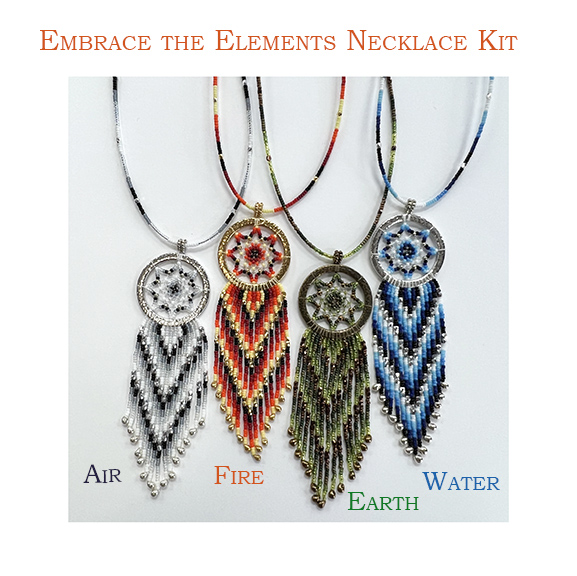 We have a new kit ready to roll, Embrace the Elements! Designed by Stephanie Melani. Inspired by the Native American Dream Catcher this pendant necklace is a combination of weaving and stringing. The Colors for each pendant were meticulously selected to show appreciation for each element. Be at one with the natural elements and enjoy wearable symbolic art. Ships July 5th, 2022. |