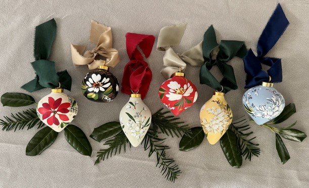 Back by popular demand are my ceramic Holiday Ornaments available for purchase in person from now through the holidays. With an original design, I have hand painted and signed each piece, finishing it with a silk ribbon, descriptive card and gift box pictured below. The cost is $55 per ornament, or two for $100. Quantities are limited so please let me know if you would like to reserve your order for pickup in my studio. These ornaments are high quality and unique, making excellent gifts for the holiday season. |