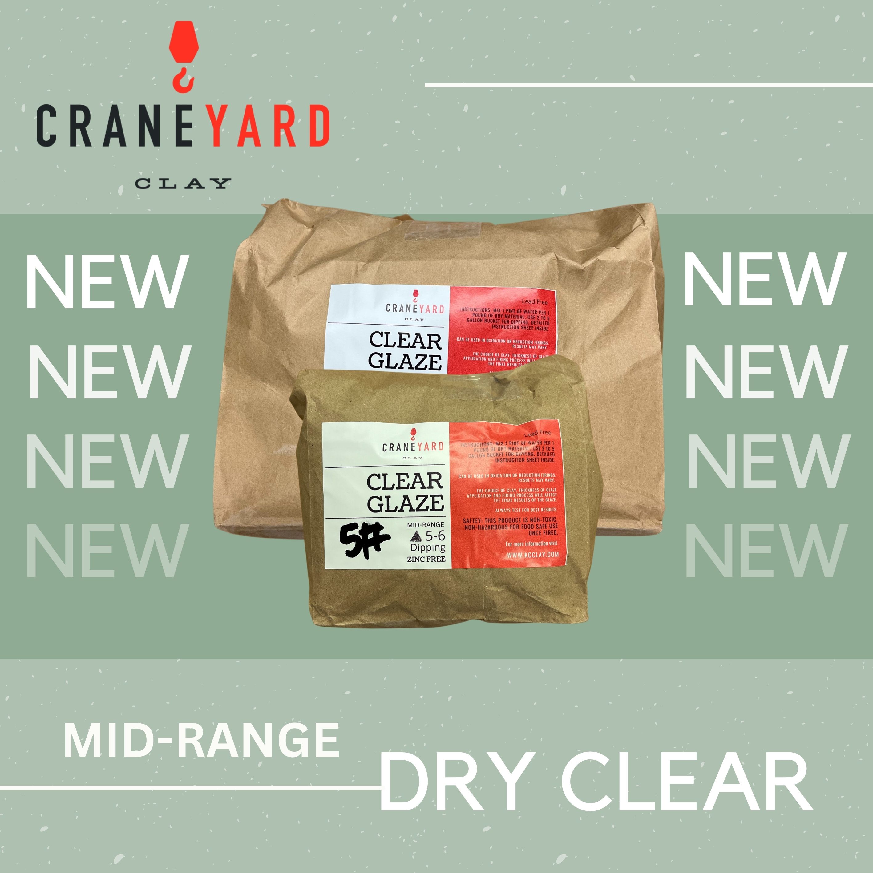 Crane Yard Clay is excited to announce the first of our dry dipping glaze line. Make gallons of Cone 5/6 Clear with our five- and fifteen-pound mixes. These are available to purchase online or in store.