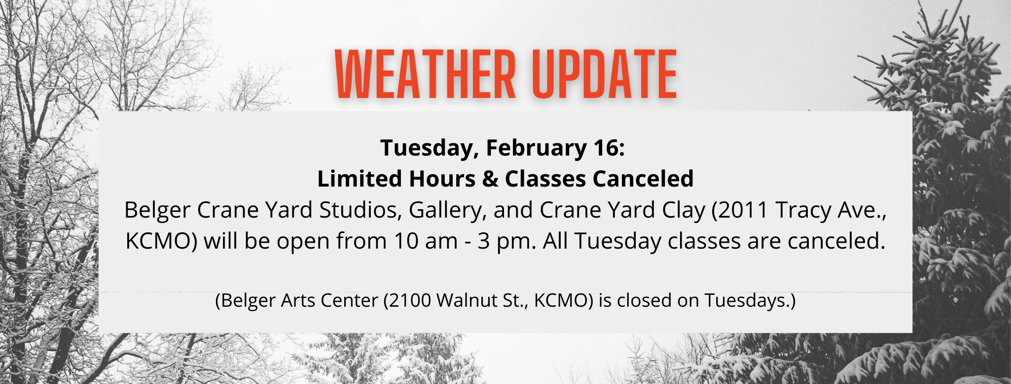 Subject: Belger Arts Weather Update