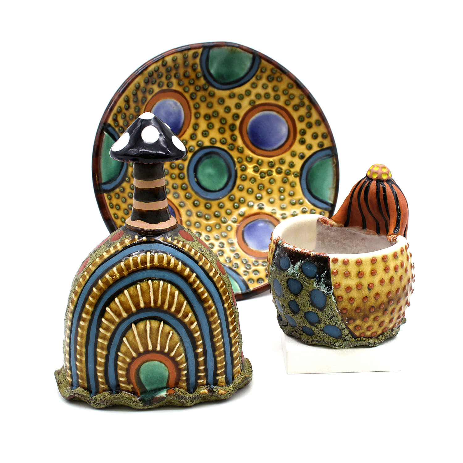 Bring some nature into your home with Ronan Kyle Peterson's vibrant colors, patterns, and glossy surfaces that stretch over his earth inspired forms. His whimsical work will be 20% off for 24 hours starting at 2:00 pm central today!