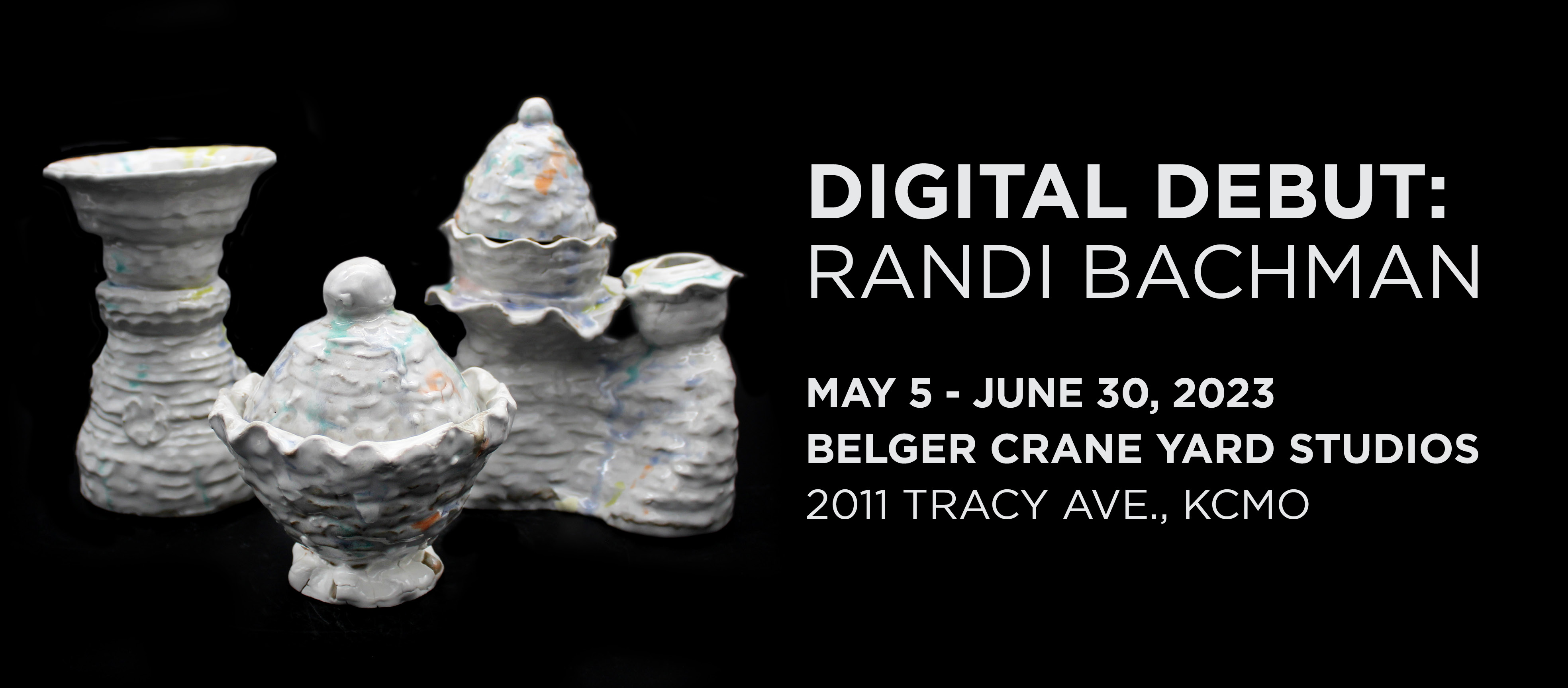 This year Belger Arts celebrates a significant milestone: the tenth year of its Artists in Residence program. The program originated at Red Star Studios, a long-time Kansas City ceramics gallery and studio. After its closing, the program found a permanent home in May 2013 when Belger Crane Yard Studios opened. Belger Crane Yard Studios continues to host national and international artists through the program, providing ceramic artists the opportunity to expand their body of work or create a special project that may be outside of the scope of their routine studio practice. The group exhibition, with its range of styles, themes, and techniques, also marks a milestone for the six artists, as it is the culmination of their time in the residency program. The exhibition runs through September 2, 2023. | | | On View at the Belger Crane Yard Gallery | | Randi Bachman a multidisciplinary artist based in Iowa City, IA, is the next Digital Debut artist. Bachman received her BFA in Ceramics from the Kansas City Art Institute and will be working on her MFA at the Cranbrook Academy of Art beginning this fall. Her awards and recognitions include the Ken Ferguson Scholarship, the McKeown Special Project Award, Kansas City Art Institute Mentorship Award, and the Regina Brown Undergraduate Student Fellowship through the National Council on Education for the Ceramic Arts. Bachman is interested in the authentic expression of experience, clay, fiber, and noise. Her work will be available online and at the Belger Crane Yard Gallery through June 30, 2023. | | | | Nikki Fanning is May’s Mug of the Month artist. You may have seen Nikki assisting in the Belger Crane Yard Gallery or providing customer support at Crane Yard Clay. Born in Kansas City, Nikki has a background in fashion design and attended Stephens College Columbia, MO. Nikki finds inspiration in music, movies, pop culture, and the vintage aesthetic. Combining this aesthetic with a fresh perspective, Nikki uses ceramic art to find fun ways to capture emotion in her work. Currently, her focus is on slip casting, special effect glazes, and raku firing techniques. Her vibrant textures and bright colors are evident in her processes. She continues to grow, adding new techniques and mediums to her process. Her mugs are available for purchase online and at the Belger Crane Yard Gallery. Don’t delay, only a few of Nikki’s mugs are left.