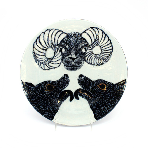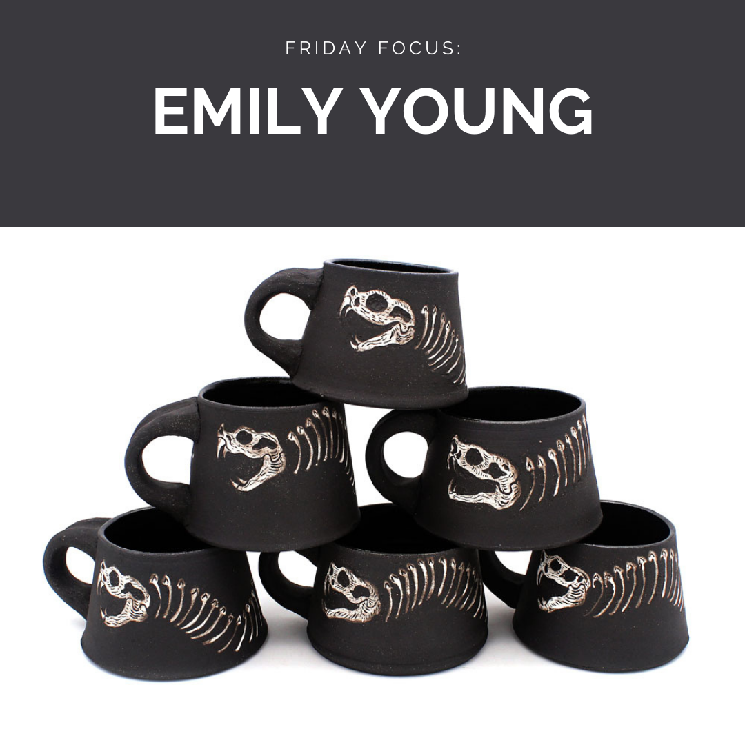 Emily Young's narrative illustrations are influenced by fables, theology, and her own personal experiences. She uses the sgraffito technique to carve her striking illustrations into the black and white clay forms. She is currently featured as our October Mug of the Month artist, and are only a couple of mugs left! Come by the Belger Crane Yard Gallery, located at 2011 Tracy Ave., to see her work or go online. The gallery is open Tuesday - Friday, 10 am - 5 pm, and Saturdays, 10 am - 4 pm. To learn more about Young and her process, check out her artist page. |