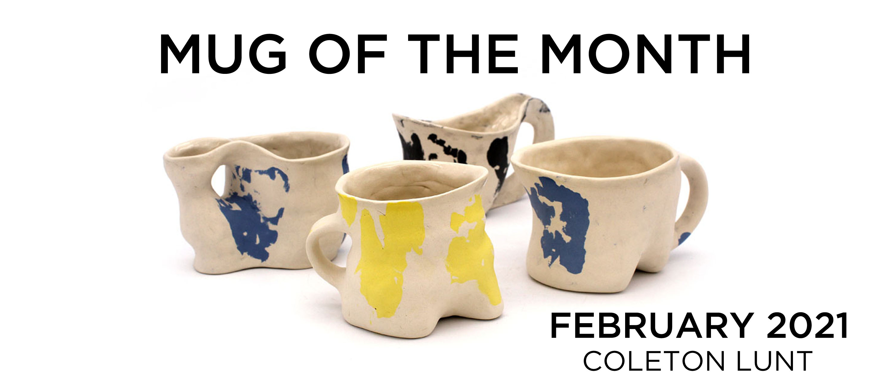 Here's a sneak peek at the February Mugs of the Month made by our very own Foundation Resident artist Coleton Lunt! Mark your calendar for Monday, February 1, when these beauties will be available online and in the gallery. You can also reserve your spot now by signing up for a month-to-month or annual subscription. |
