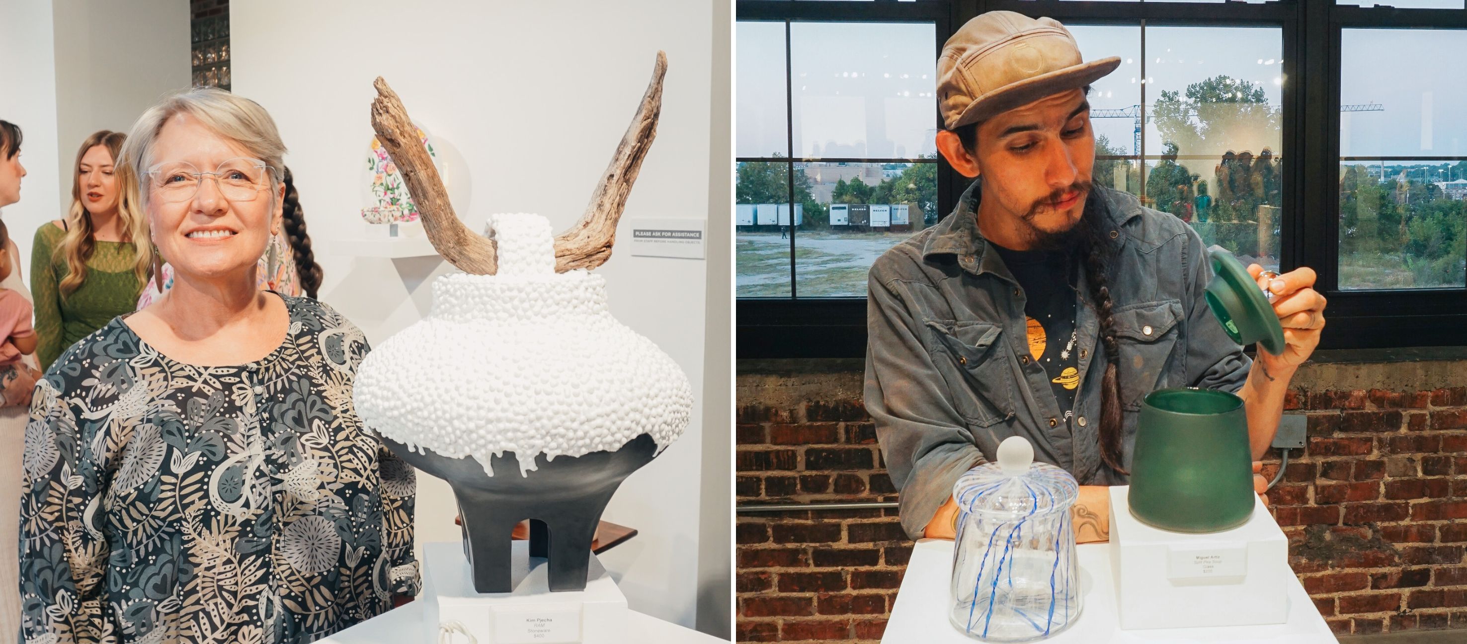 We are thrilled to highlight two artists whose creativity and dedication are on view at the Belger Crane Yard Gallery.  Miguel Artiz (right) is based in South Carolina and specializes in both ceramics and glass. He is dedicated to creating unique aesthetic experiences within functional ware and house décor, exploring form, function, and technique to transform the ordinary into the extraordinary. His work is featured in Put a Lid on It and Holidays at the Belger Crane Yard Gallery, two exhibitions currently on view through January 3, 2026.   On most days Kim Pjecha (left) can be found working in the Belger Crane Yard Studios, where she’s a valued Studio Member. After a 37-year career as an illustrator and product designer, Pjecha is now retired and fully devoted to sculpting and creating for herself. She explores themes of memory and history, pushing the boundaries of her medium to prompt viewers to engage with contrasting and thought-provoking ideas. We congratulate her for receiving an Honorable Mention from the judges for her work titled RAM, included in the exhibition Put a Lid on It.  You can also meet her and see more of her work during the Holiday Studio Sale and Open House on November 21 and 22. |