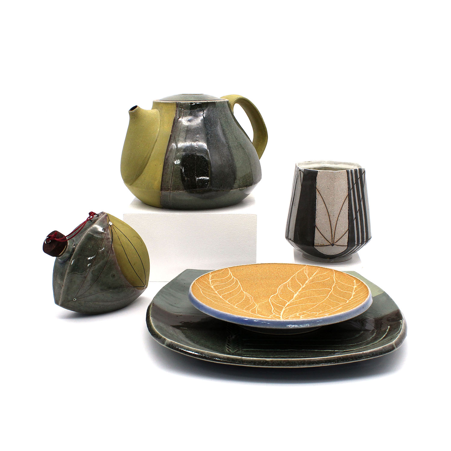 Amanda Bury, Collection of Dinnerware, 2020, Stoneware clay, Slip, Glaze