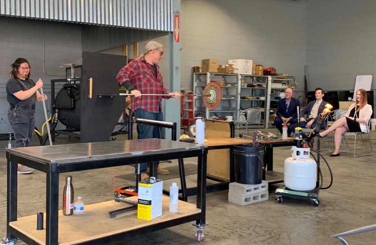 | | Eleanor Foy, The Object, 2022. Ceramic, steel, electrical components, found plastic, 9.75 x 12 x 4 in. Courtesy of the artist. | The Belger Arts annual resident exhibition, Groundwork, opens Friday, June 3 at the Belger Crane Yard Gallery (2011 Tracy Avenue., KCMO 64108). The opening reception is from 6 to 8 pm, with artist remarks at 6:30 pm. Groundwork includes work by current Artists in Residence: Summer Brooks, Elaine Buss, Eleanor Foy, Sun Young Park, Adams Puryear, and Nicole Woodard. For the six artists, the past year has been one of processing and navigating uncertainty, while persistently evolving, creatively thriving, and laying the “groundwork” for what’s to come. The exhibition remains on view through September 3, 2022. | | | | Sarah Gross, Consumption, 2019. Slip-cast ceramics, 58 x 417 x 1.75 in. | Also, opening first Friday, June 3 at the Belger Crane Yard Gallery is Imprint, a two-person exhibition featuring ceramic works by Sarah Gross and fiber works by Mary Anne Jordan. Sarah Gross uses pattern and repetition to build complexity and engage the viewer’s eye. Her imprint is evident in the labor-intensive surface decoration of her vessels and in her installation titled Consumption, a 36-foot-long carpet of red-glazed ceramic tiles. Mary Anne Jordan uses nontraditional quilting processes to create hand-dyed, quilted, and stitched works. Creating pattern using bold colors and intensive hand-stitching, she allows her dyes to run and smear to reveal the artist’s imprint and a humanness to the work. The exhibition is on view through August 6, 2022. | | | First Friday Glassblowing Demo | | Join us at the Belger Glass Annex (1219. East 19th St.) this First Friday, June 3 from 6:00pm to 8:00pm for a free glassblowing demonstration led by Robert Flowers. Watch as a team of glassblowers heat and shape hot glass into a work of art. This demonstration is an open-house-style event, so pop in for a little while or stay the entire time! | | | | June Mug of the Month featured artist is Bill Jones, a current resident at Red Lodge Clay Center in Montana. He likens his stoneware mugs to drawings. They carry his thoughts, feelings and memories. They are available online and in the Belger Crane Yard Gallery. Learn more about Bill Jones by visiting his artist page.